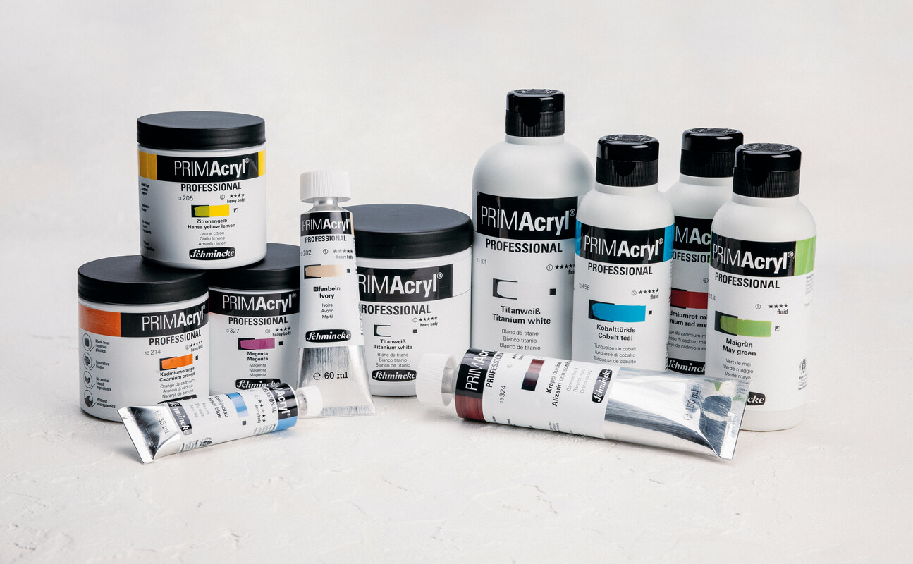 PRIMAcryl® Professional ist die umfassend überarbeitete Premium-Acrylfarbe von Schmincke mit einer Palette von 90 brillanten Farbtönen, darunter 17 neue Töne. Die pastose, griffige Konsistenz weist einen hohen Fließwiderstand bei bester Vermalbarkeit auf. Die Trocknung erfolgt elastisch und konuterenstabil, wodurch sie sich ideal für erhabene Konturen, pastose Darstellungen sowie Spachteltechniken eignet. Es entsteht nahezu keine Farbtonverschiebung von nass zu trocken. Nach der Trocknung ist sie wasserfest lichtecht und höchst beständig. PRIMAcryl® Professional verfügt über eine überdurchschnittlich hohe Pigmentierung. 2/3 aller Farben sind sogar Ein-Pigment-Töne die für eine Brillanz sorgen, die ihresgleichen sucht.